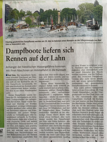 Donnerstag Dampfbootrennen auf der Lahn vor Bad Ems